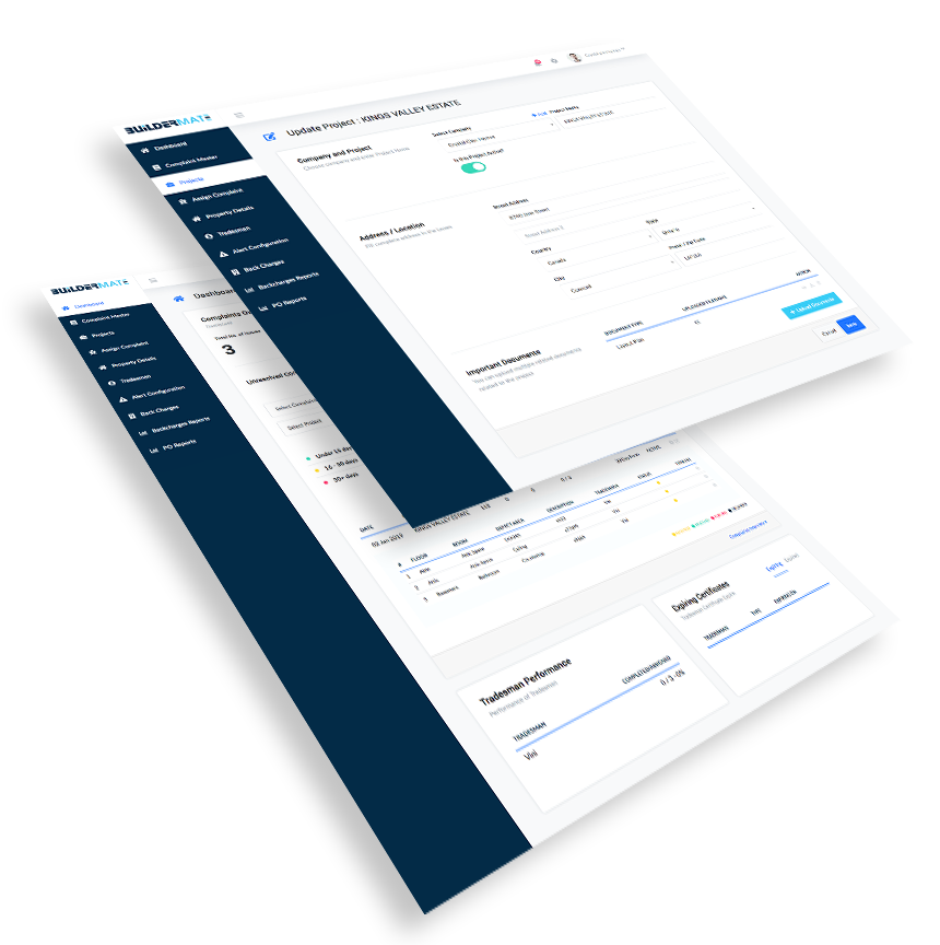 Save time, work faster, and improve efficiency with Builder Mate, your Home warranty management system that allows you to automate and manage the complete process of complaints from a single dashboard in order to function in accordance with the Tarion. As a Builder you can communicate and track the progress of the tradesmen involved in all projects and lots right up to the sign off to ensure complete transparency. Not only can your Tradesmen’s WSIBs be uploaded, but you also get notified before their expiry dates. And, as an added advantage you the builder are able to recover back charges from Tradesmen when and where necessary. Quit worrying, and trust your mate.